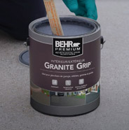Obtenez un joli fini texturé et moucheté unique en son genre sur vos surfaces horizontales en béton et en maçonnerie grâce au revêtement Granite GripMD de BEHR PREMIUMMD