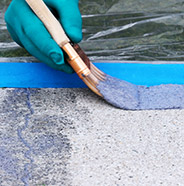 Colmater d’abord les fines craquelures de 2 mm ou moins avec le produit à l’aide d’un pinceau. Les fissures plus profondes peuvent nécessiter plusieurs remplissages pour remettre la surface de niveau. Laisser sécher complètement avant l’application au rouleau.