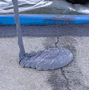 Après le découpage des bords, verser une coulée de 30 cm de longueur et d’environ 1 m de largeur directement sur la surface. Pour les surfaces plus petites, verser une coulée de 1 à 2 m de longueur et d’environ 1 m de largeur. REMARQUE: Éviter d’appliquer une trop grande quantité de produit afin d’éviter le craquèlement, l’écaillage et une réduction du taux d’étalement.