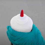 Bien agiter le contenant, retirer le bouchon rouge et couper une petite ouverture sur le bec.