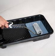 Trempez le rouleau dans le bac à peinture, puis passez-le sur la partie nervurée pour éliminer l’excédent de peinture et éviter les coulures. Répétez cette opération pendant environ 10 à 15 secondes, ou jusqu’à ce que le rouleau soit complètement saturé.