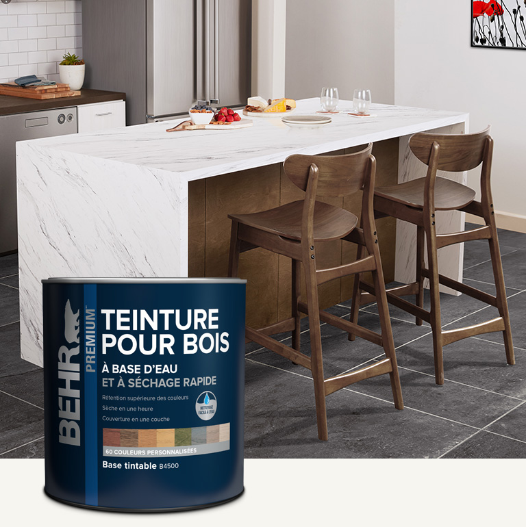 BEHR offre maintenant des teintures intérieures de haute qualité dans une gamme de couleurs populaires ainsi que des finis transparents conçus pour protéger vos surfaces préférées de bois.